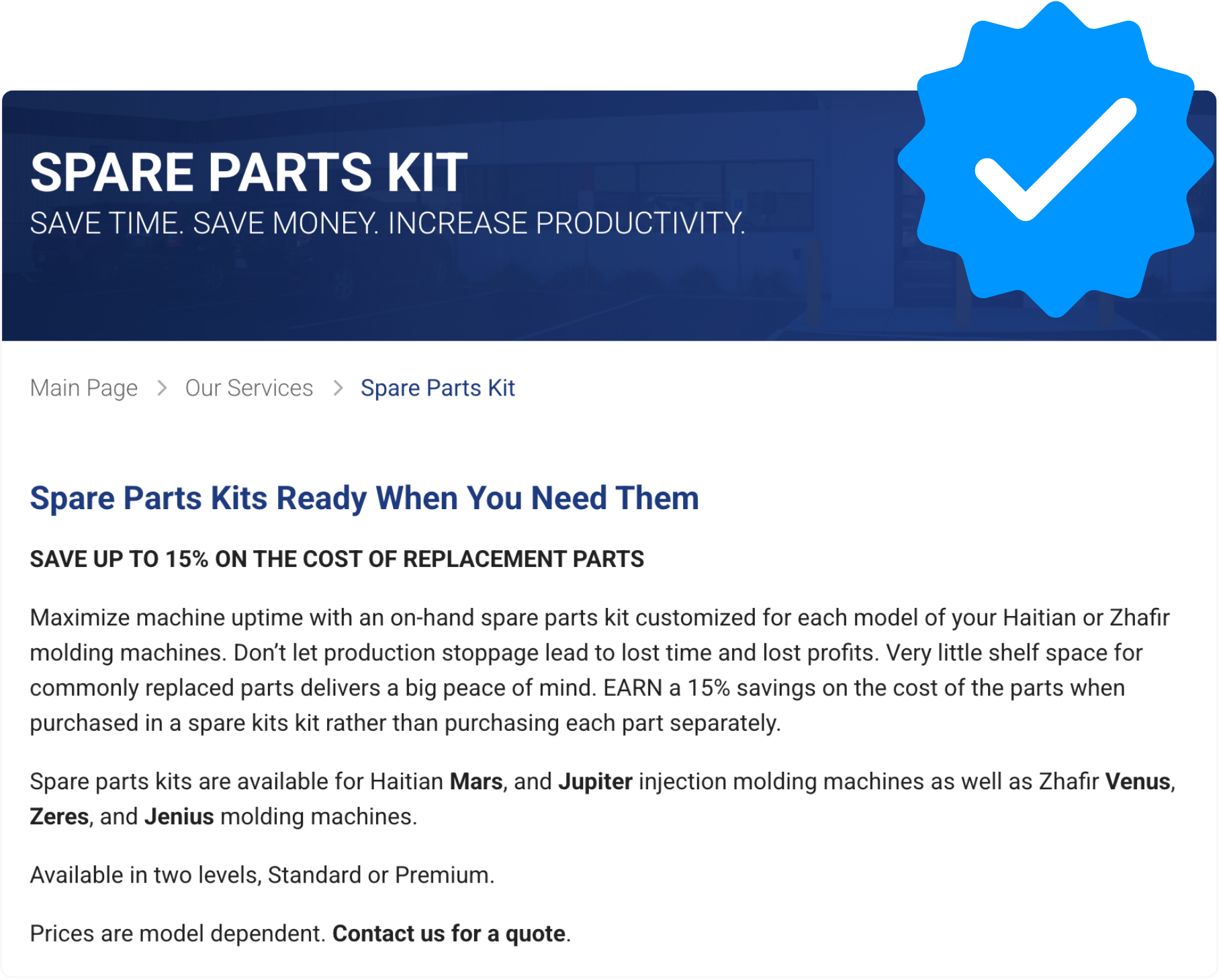 → Preventive maintenance programs tailored to customer requirements and timing