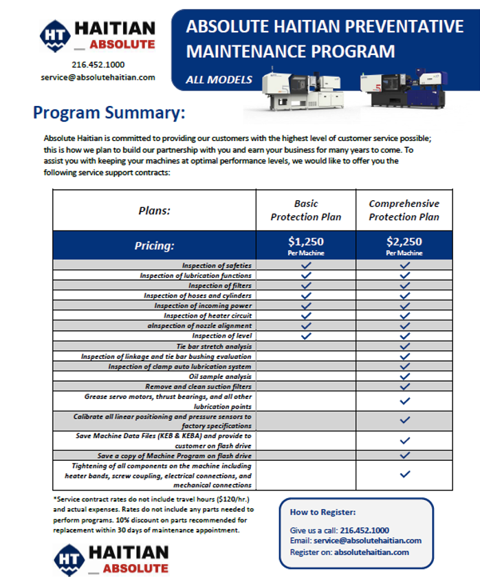 Q: How does Absolute Haitian help injection molders stay on top of maintenance needs for their Haitian molding machines?